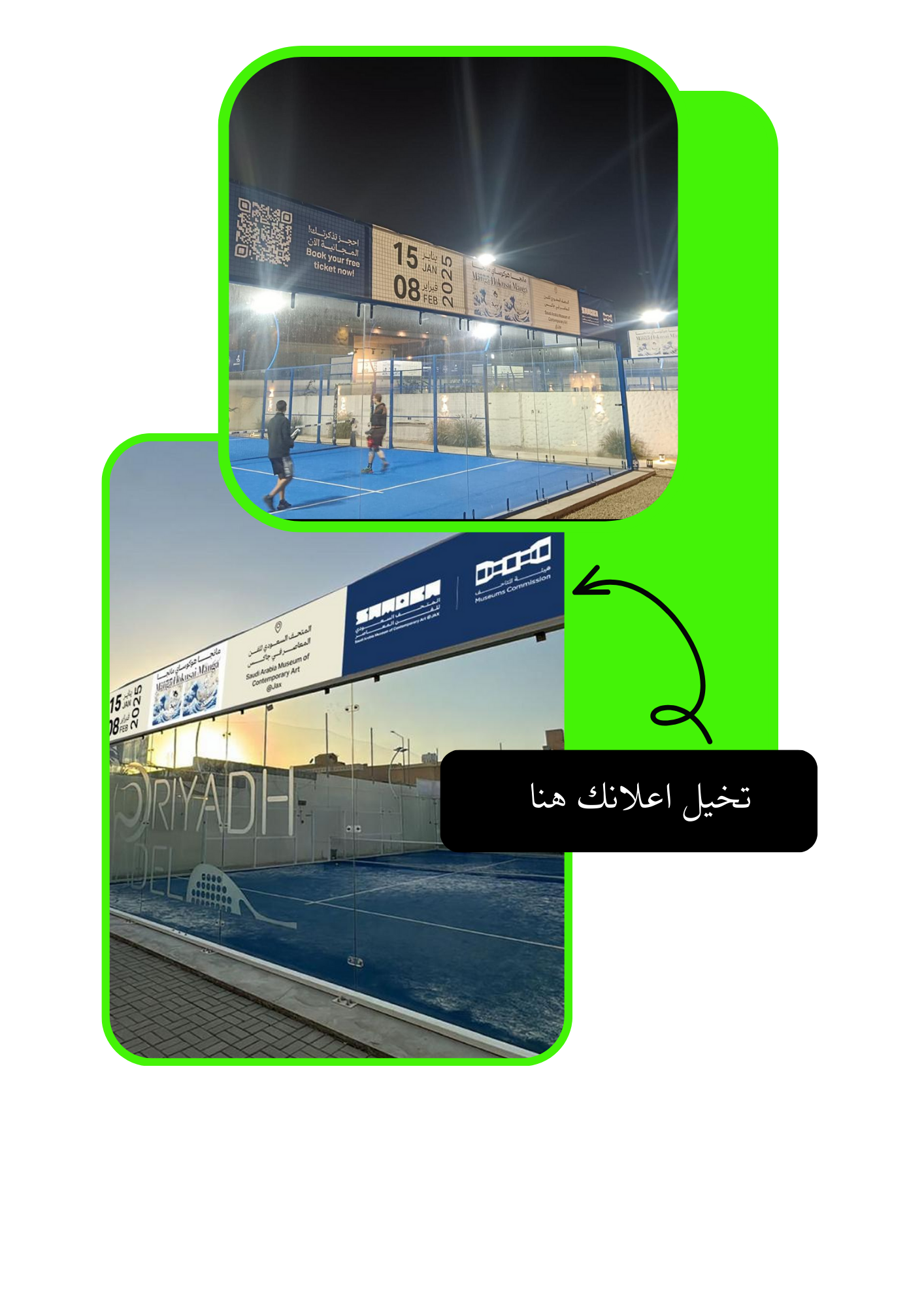 في شركة علن، نربط علامتك التجارية بأسلوب حياة نشط من خلال الإعلانات في المنشآت الرياضية. من خلال إعلانات ملاعب البادل، تصل إلى جمهور رياضي ملتزم ونشيط.